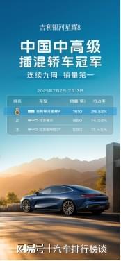 在汽车市场的猛烈比赛中,B级插混轿车赛道向来是各大品牌“必争之地”,而吉祥银河星耀8,正以绝对统治力誊写属于本身的传奇。2025年7月7日-13日零售数据奇怪出炉,星耀8依附1610辆的亮眼销量、 ...