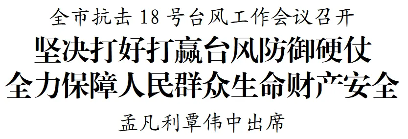 9月22日,全省抗击18号台风工作集会竣事后,我市接续召开全市抗击18号台风工作集会,对台风“桦加沙”防御工作举行再摆设、再推进、再落实。市委书记孟凡利主持集会并发言,市委副书记、市长覃 ...