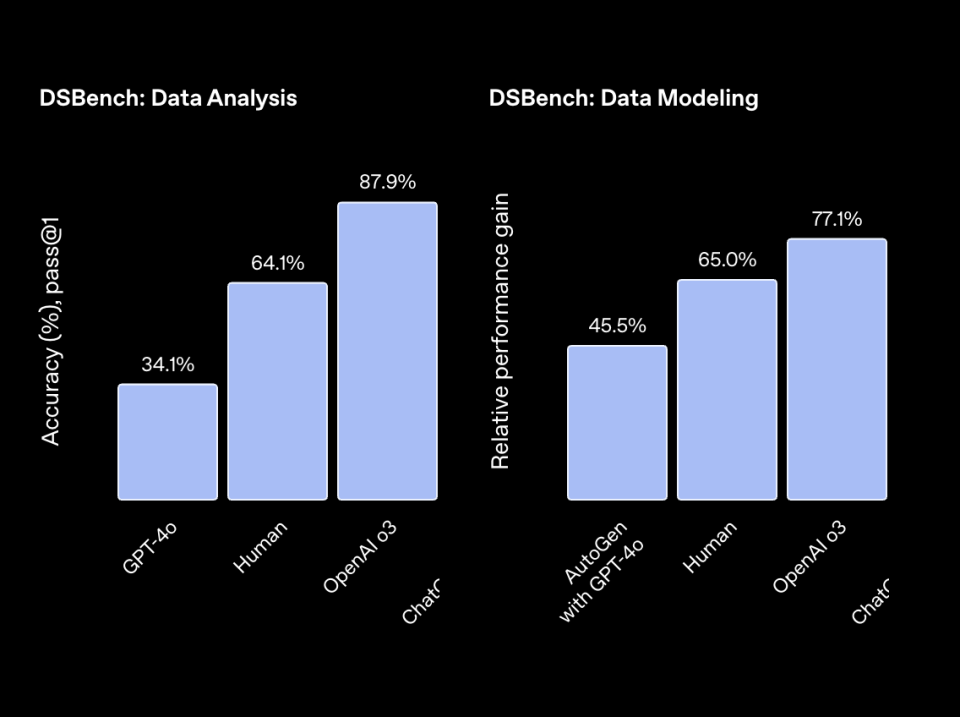 在实际数据科学使命 DSBench 上,其分析与建模正确率分别到达 89.9% 与 85.5%,远超人类均匀程度。