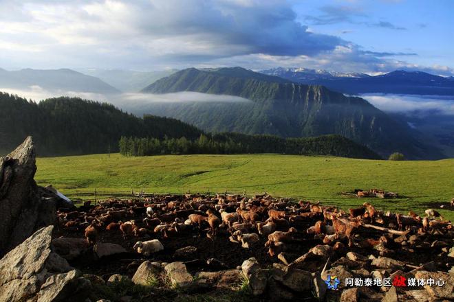 转场,是在差别高度上的移动。 阿勒泰是新疆紧张的畜牧业地域之一,境内广袤的四序草场,分布在阿尔泰山和准噶尔盆地之间。 由北向南,阵势由高至低,地貌从白雪皑皑的山顶、广袤无边的丛林,渐渐向极地苔原、妖冶草甸转换,末了延伸至准噶尔盆地中央。 当漫长冬季到临,“雪赶牛羊走”,在阔别山区的“冬窝子”,牛羊嚼着牧人预备的饲草,静待春天;入春,草木复苏,新一年的转场便跟随春天的脚步,由南向北渐次移动;至夏,从山前到高山,羊群跟随丰美的水草,不停向北;当金风抽丰乍起、草枯地黄,转场门路转而向南,回到暖和的河谷低地,再次回归躲避寒冷的港湾。 牧民们总能敏锐地踩到季候的节奏。南北折返,春天接羔,炎天催膘,秋日配种,冬天孕育。 在四序牧歌的阿勒泰,高山牧场的牧民承袭着千年传统游牧方式,每年从春至冬,由南往北再往南迁徙往复,行程少则几十公里,多则上千公里。 在牧民垂直移动放牧中,转场可以或许公道使用牧草资源。“这种独特的放牧方式,顺应了本地的高山草地天然生态体系。”中南民族大学民族学与社会学学院传授陈祥军说。