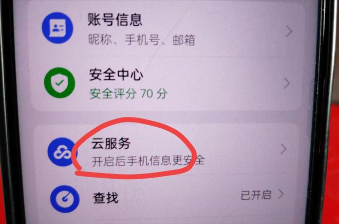 接着在这里大家要注意了,我们需用旧手机上面登录的云服务账号,在新手机上面登录