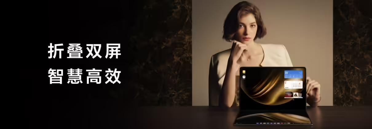 屏幕上,华为MateBook Fold 非凡大师采用了全球最大的双层 OLED 屏幕,具备 1600nits 高亮度、 3.3K 高分辨率、200,0000:1 的超高对比度、1440Hz 高频 PWM 调光、自适应 P3 广色域色彩管理、LTPO 自适应刷新率和 HDR Vivid 等。