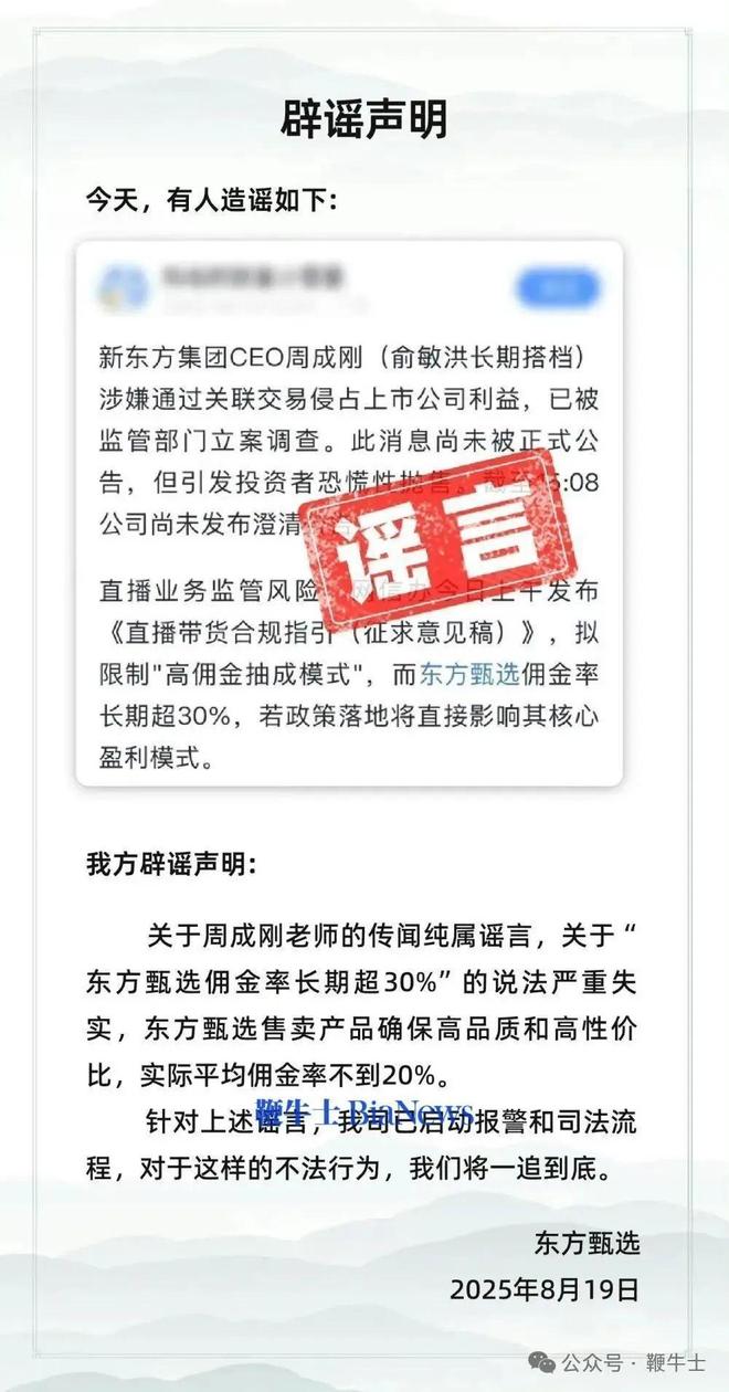 8、卢伟冰:小米汽车有望下半年红利,2027年将进军欧洲电车市场 8月19日,小米团体合资人、团体总裁卢伟冰在业绩电话会上表现,有信心完成35万辆小米汽车的整年交付目的。 他表现,本年第二季度,小米智能电动汽车及AI等创新业务收入大幅增长234%至213亿元,谋划亏损大幅收窄至3亿元,按照当前的速率,有望在下半年单月或单季红利。但2022年至2025年上半年,小米在汽车等创新业务上的费用投入超300亿,累计来看仍有较大亏损,全面红利另有很长一段路要走。 卢伟冰还透露,小米将在2027年正式进入欧洲电动汽车市场。 9、消息称爱奇艺已约请投行,春节前或在香港二次上市 8月19日,据路透社报道,有两位知恋人士透露,爱奇艺已约请美国银行、中金公司和摩根大通安排其在中国香港的二次上市事件。爱奇艺此次上市大概筹集2亿美元至3亿美元资金。 知恋人士称,爱奇艺筹划在本年第三季度提交上市申请,大概在2026年2月中旬夏历新年前完成上市。 10、京东外卖:15万全职骑手已全部缴纳五险一金 8月19日,京东公布,停止现在,京东外卖全职骑手已突破15万人,公司为他们全部缴纳五险一金且负担全部费用,每人每月均匀缴纳约2000元。 京东方面表现,对于全职骑手,京东对峙做到3个100%:100%签署劳动条约,100%交齐五险一金,100%正式员工福利。 11、股价大跌,谎言四起,东方甄选报警! 8月19日,东方甄选股价出现极度颠簸。 本日下战书生意业务时段,东方甄选尾盘一度涨超23%,今后股价快速跳水转跌。停止收盘,东方甄选跌20.89%,报34.32港元,振幅45.41%,成交金额93.85亿港元。 本日有消息称,新东方团体CEO周成刚或涉关联生意业务被羁系部分备案观察。对此,新东方首创人俞敏洪回应称,彻底的谎言。 针对网络听说,东方甄选官方回应表现,相干内容纯属谎言,并已正式启动报警步伐。