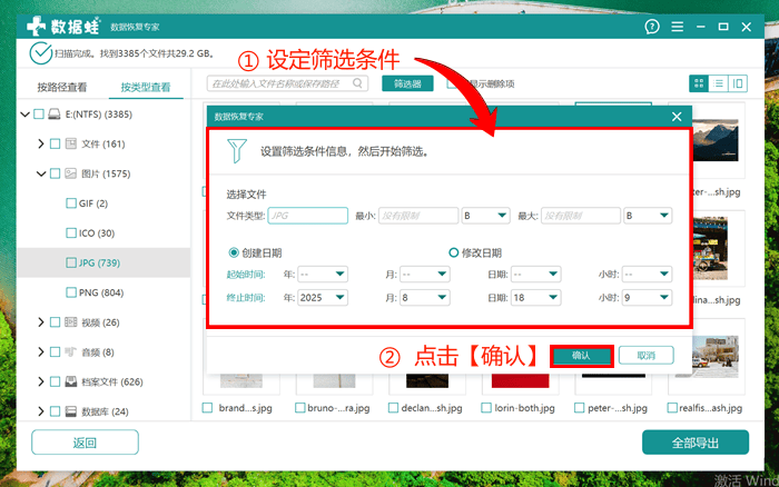 第二步:点击扫描,在等待深度扫描完成的过程中,你还可以先行下载快速扫描的结果。 第三步:深度扫描完成后,我们就可以在故障的硬盘中找回丢失的数据。数据太多,无从下手?使用筛选器可以帮助我们快速上手。
