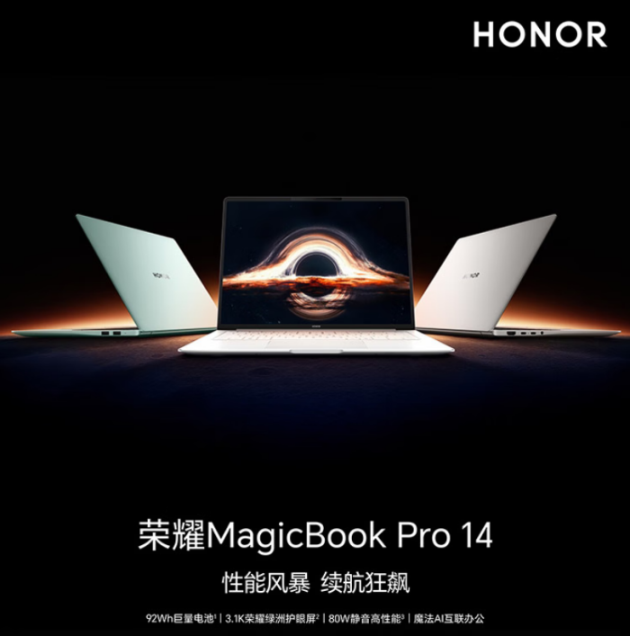2.性价比之王:荣耀MagicBookPro14(Ultra5255H版)(约4805元,优惠+国补后)