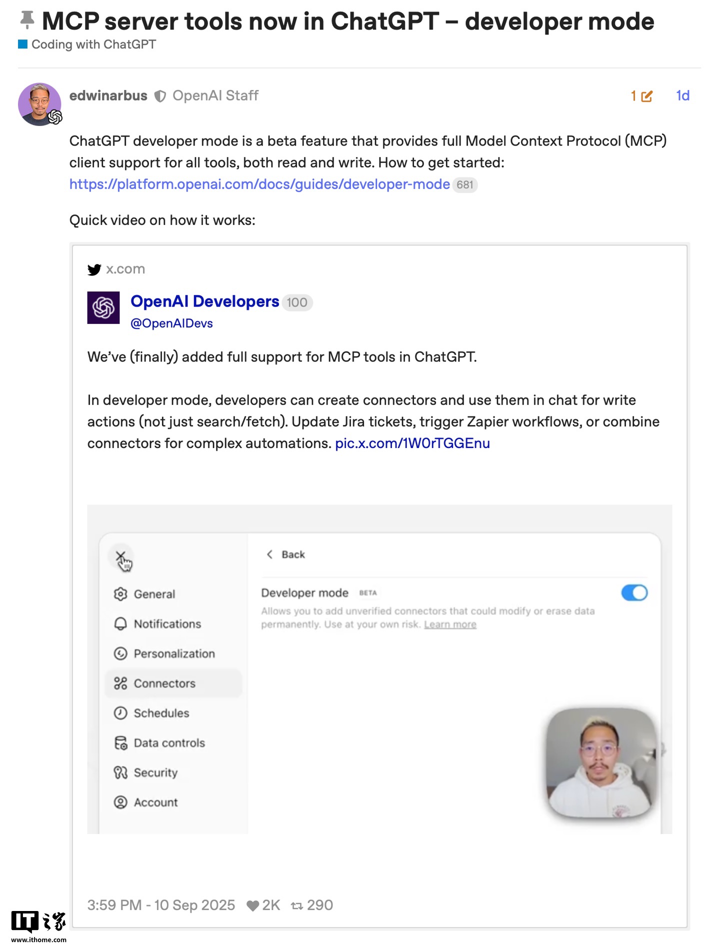 IT之家 9 月 11 日消息,OpenAI 发文,公布开始为 ChatGPT 带来“开辟者模式(Developer Mode)”,用户可以在该模式下接入 MCP (Model Context Protocol)客户端。不外相应功能现在临时仅上线网页端,同时仅支持 Plus / Pro 订阅用户利用。 ![]() 据先容,用户需在设置页面“Connectors”中手动启用开辟者模式,之后即可设置 MCP 客户端(支持 SSE 与流式 HTTP 协议),从而通过 MCP 毗连器直接访问外部体系、更新 CRM 记载或为代码堆栈创建拉取哀求(Pull Request),使应用场景更贴近真实开辟工作流程。 OpenAI 夸大,这一“开辟者模式”权限相称高,用户在操纵时需格外留意安全,同时相应体系在安全计划上也格外审慎:每次工具调用都会表现完备的 JSON 输入与输出,全部大概修改数据的操纵都需人工确认。若工具未特殊标注为只读(readOnlyHint),体系会默认其为有写入风险的操纵。用户也可选择记着对某个工具的答应或拒绝设置,以免在同一对话中重复确认,但在开启新对话或革新后,体系会再次提示,以防主动化流程失控。 OpenAI 同时提示开辟者,在启用相应功能后,必要特殊留意“提示词注入(Prompt Injection)”等攻击风险,同时模子在实行写入操纵时仍大概出现逻辑错误环境,因此用户应其时刻关注输入内容的精确性。 |